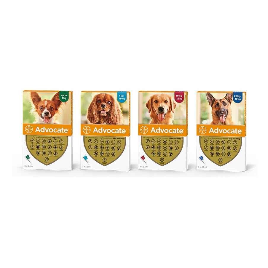 Препоръчаните минимални дози са 10 мг/кг телесна маса (т.м.) имидаклоприд и 2,5 мг/кг т.м. моксидектин, това съответства на 0,1 мл/кг т.м. Адвокейт за кучета.