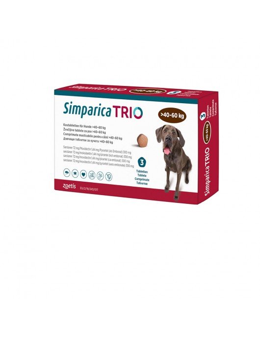Дъвчащи обезпаразитяващи таблетки Simparica Trio за кучета с телесно тегло от 40 до 60 кг, 3 броя таблетки