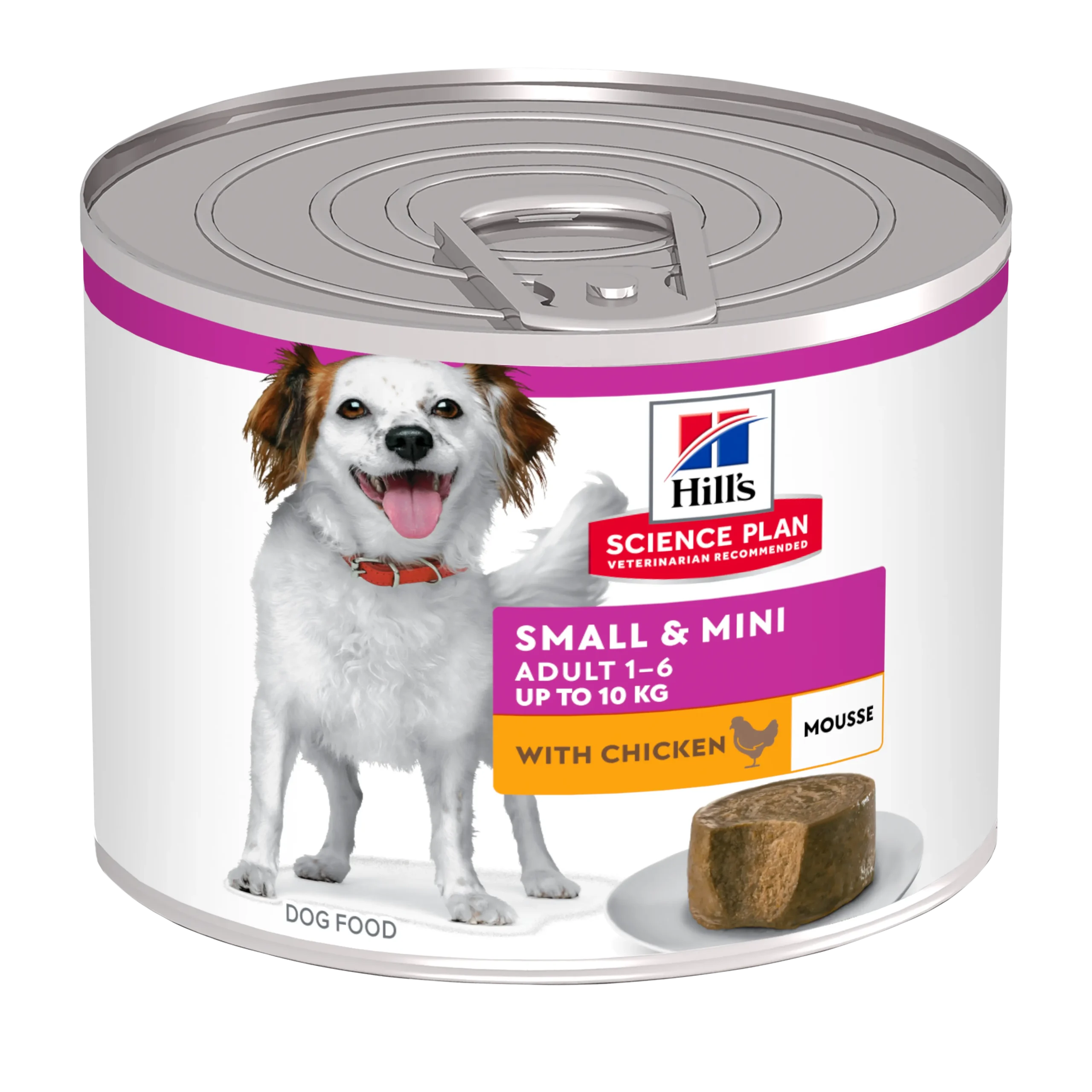 Hill’s Science Plan Small & Mini Adult Mousse Chicken е пълноценна храна с мека текстура за израснали кучета от дребни породи на възраст 1–6 години. Тази храна е формулирана за специфичните нужди на кучетата от дребни и мини породи в разцвета на живота им.