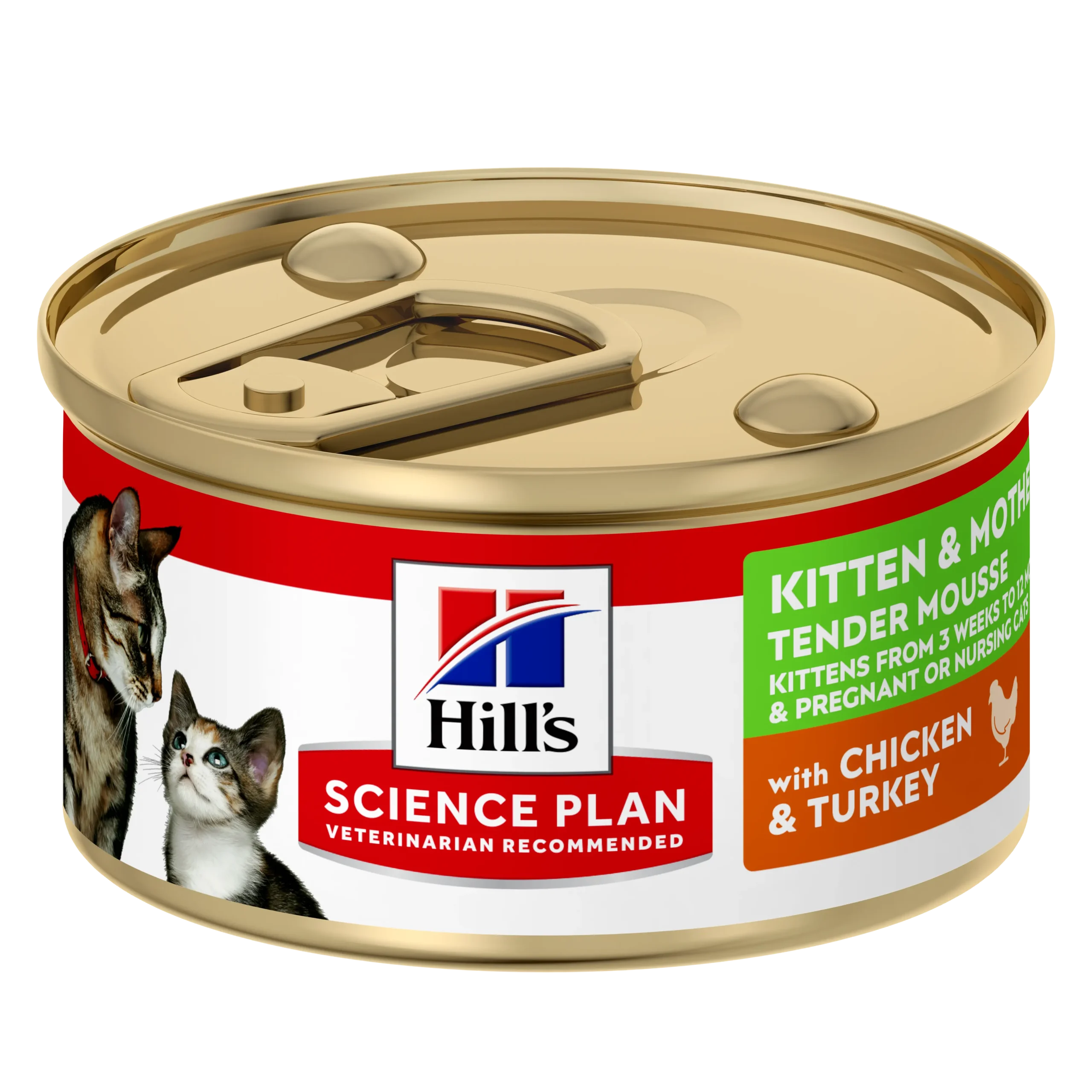 Hill’s Science Plan Kitten & Mother Mousse Chicken and Turkey – Пълноценна и балансирана храна с гладка текстура за за котенца от отбиването до 1 година и бременни или кърмещи котки, фин мус с пилешко и пуешко, консерва