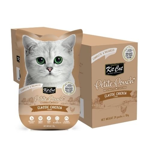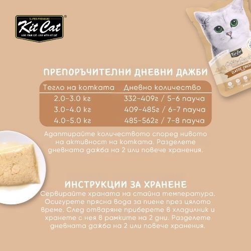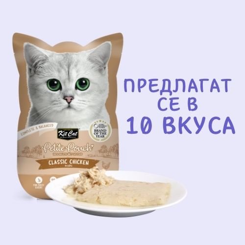 Kit Cat Petite Pouch Chicken in Aspic – Пълноценна и балансирана храна за котки в зряла възраст, пилешко в аспик (желе) 12 бр. х 70 гр.