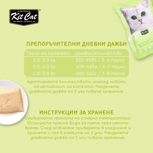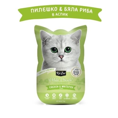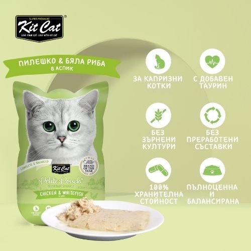 Kit Cat Petite Pouch Chicken & Whitefish in Aspic – Пълноценна и балансирана храна за котки в зряла възраст, пилешко и бяла риба в аспик (желе)