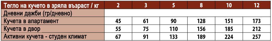 Инструкции за употреба: Препоръчителният дневен прием на храната (виж таблицата) може да бъде разделен на 2 дневни хранения. Индивидуалните хранителни нужди могат да варират в зависимост от размера, възрастта и нивото на активност на животното. Уверете се, че има чиста и прясна вода на разположение по всяко време. Когато този продукт замества друг вид храна и/или диета, се препоръчва да се въведе постепенно за период от поне една седмица. *Може да съдържа следи от други източници на протеини. Храна само за домашни любимци, не e подходяща за човешка консумация.