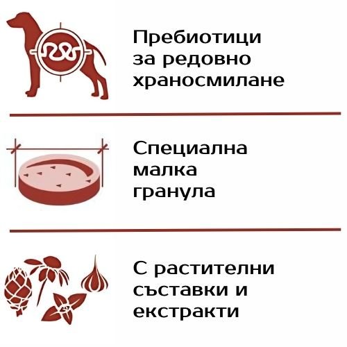 Специално разработена за благосъстоянието на вашето куче с висококачествени хранителни вещества, резултат от изследване проведено в Италия. Продукт, формулиран с един източник на животински протеин*, то първата съставка е агнешко, характеризиращо се със своята смилаемост и отличен вкус, поради включването на прясно месо. Рецептата е подобрена и с следващо поколение XOS (ксило-олигозахарид), пребиотици за поддържане на чревното здраве и с растителни съставки и екстракти, като корен от ехинацея, риган, чесън, екстракт от артишок и спирулина, съдържащи антиоксиданти за неутрализиране на свободните радикали. Размерът на гранулите е специално разработен за малки зъби и челюсти. Без добавени оцветители и изкуствени консерванти.