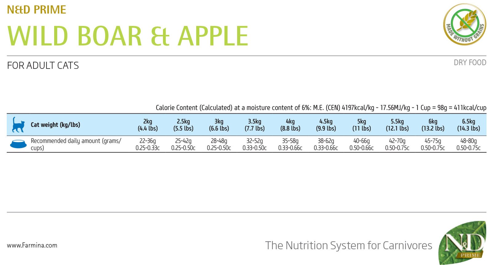 N&D Prime Cat Adult Wild boar & Apple – суха храна без зърнени култури за котки над 1 година, с глиганско и ябълка