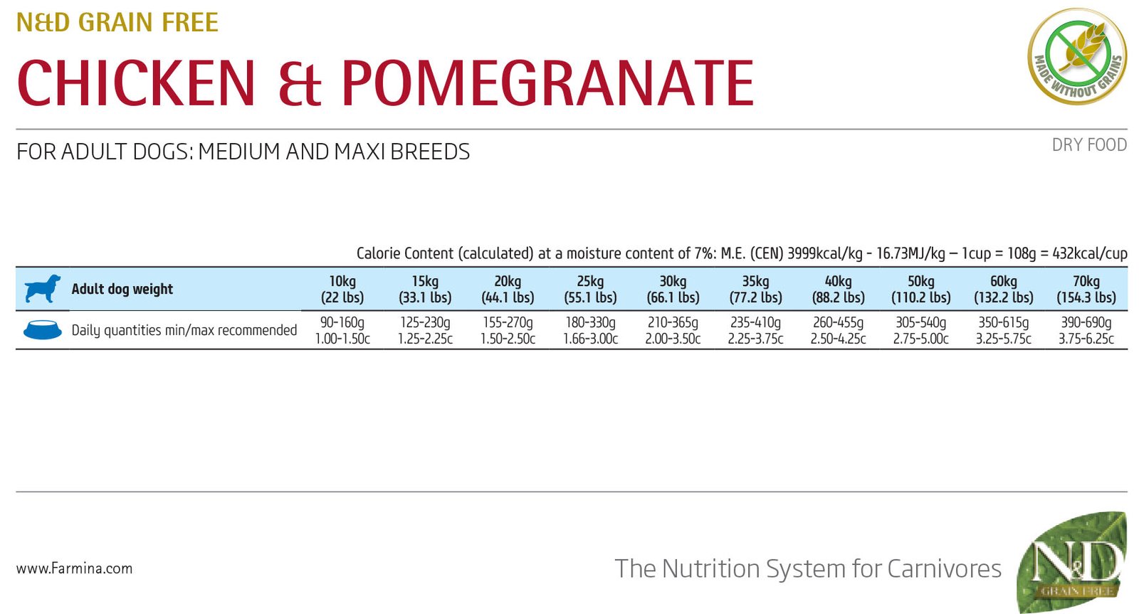 N&D Prime Chicken & Pomegranate Adult Medium & Maxi – суха храна без зърнени култури за кучета над 1 година от средни и едри породи с пилешко и нар