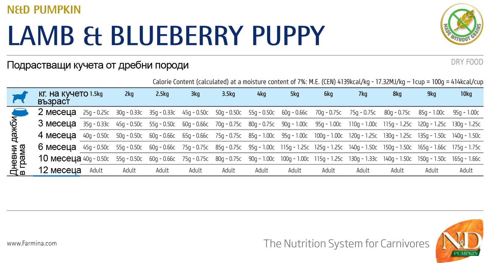 N&D Pumpkin Lamb & Blueberry Puppy MINI – суха храна без зърнени култури за подрастващи кученца от дребни породи с агнешко, тиква и боровинки