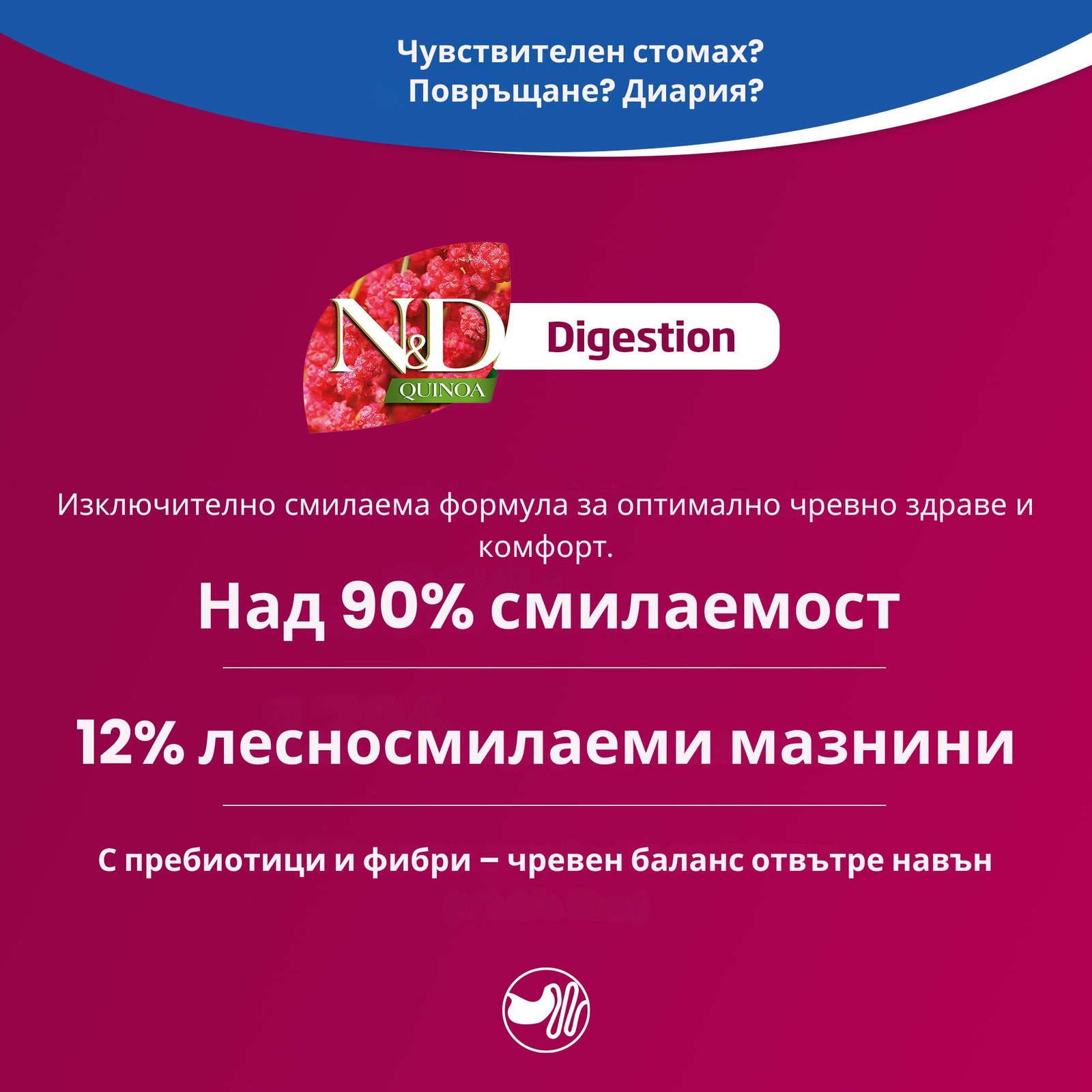 N&D Quinoa Digestion Lamb Adult dog – мокра храна за добро храносмилане и без зърнени култури за кучета над 1 година, с агнешко, киноа, копър, мента и артишок, консерва 285гр.