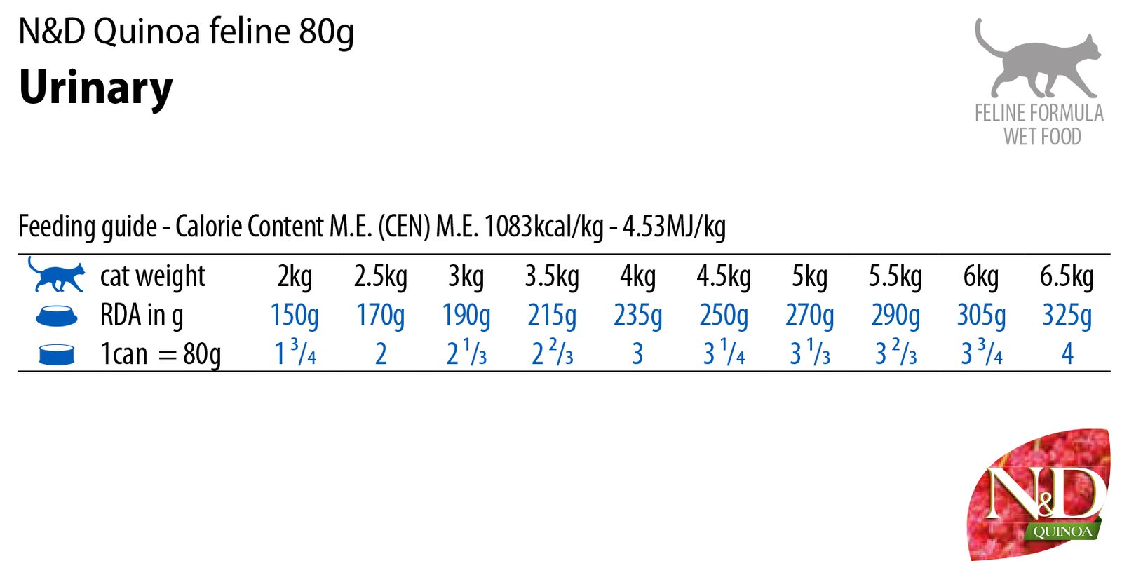 N&D Quinoa Urinary with Duck & Cranberry , Cat Adult – мокра храна без зърнени култури за здрав уринарен тракт, за котки над 1 година, с патешко, киноа, червена боровинка и лайка, консерва 6 бр. х 80г.