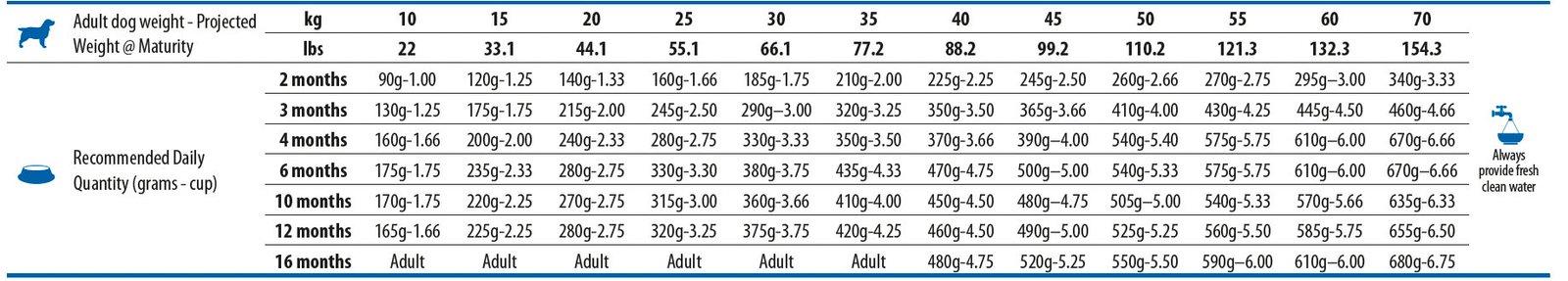 Аналитични съставки: суров протеин 30.00%; сурова мазнина 20.00%; сурови влакнини 2.50%; сурова пепел 8.10%; калций 1.10%; фосфор 0.91%; омега-3 мастни киселини 0.90%; омега-6 мастни киселини 3.40%; EPA 0.30%; DHA 0.50%; глюкозамин 1400mg/kg; хондроитин сулфат 1100mg/kg.