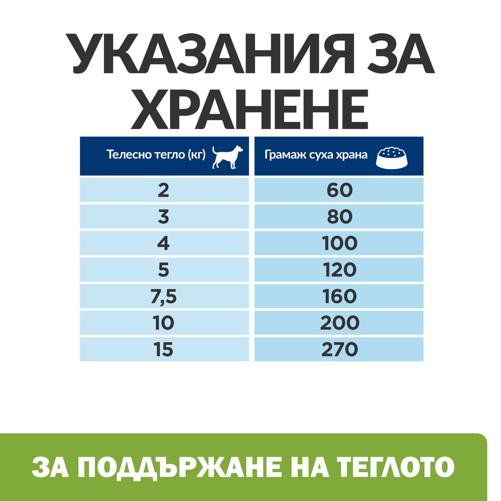 За пръв път ползвате тази храна? Смесвайте увеличаващо се количество от новата храна с намаляващо количество от старата храна в рамките на 7 или повече дни. Винаги оставяйте прясна вода за пиене! Хранителните потребности на домашните любимци се променят с възрастта. Консултирайте се с ветеринарния лекар при всеки преглед.