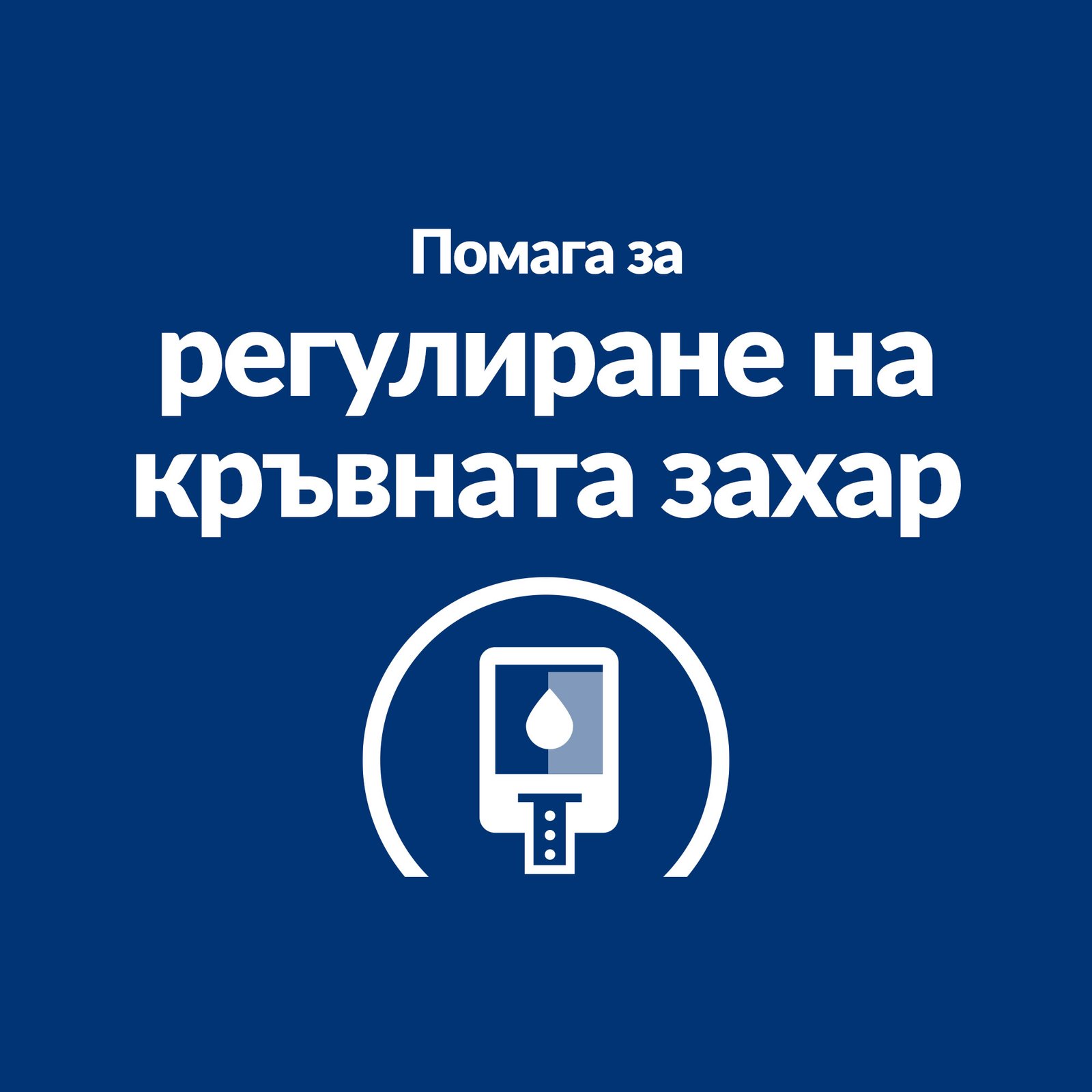 Клинично доказана храна с намалено съдържание на мазнини и високо съдържание на фибри за поддържане на оптимално телесно тегло при кучета със захарен диабет и склонни към натрупване на наднормено тегло и затлъстяване.