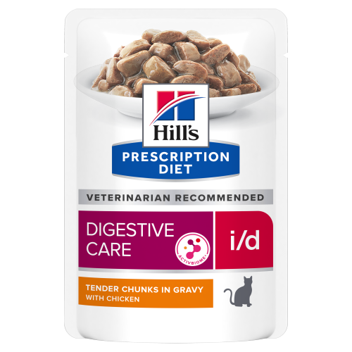 Hill’s PRESCRIPTION DIET i/d Digestive Care AB+ Pouch – лечебна мокра храна за котки с храносмилателни разстройства и за възстановяване, пауч с пилешко