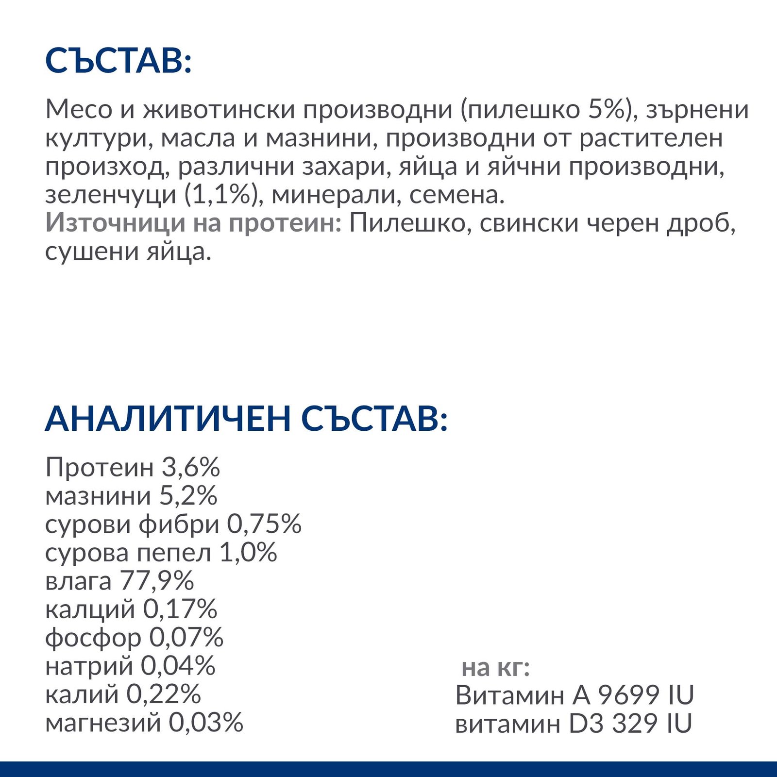 Тези консерви с вкусни хапки в сос от пилешко и добавени зеленчуци ще се харесат и на най-капризните домашни любимци.
