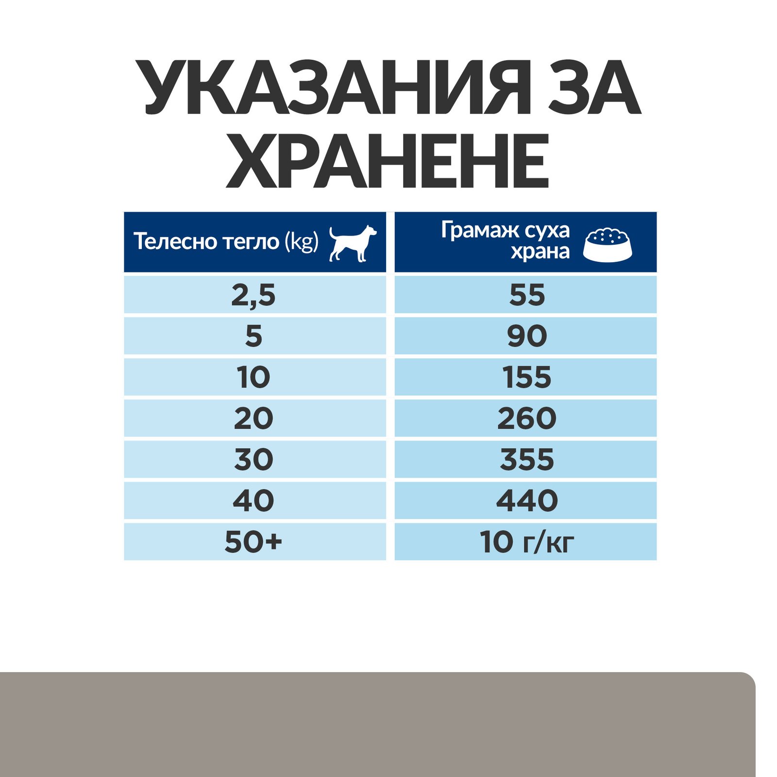 | Тегло на кучето — кг | Количество на ден — /г/ |