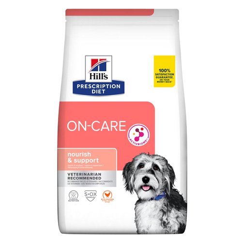Hill’s PRESCRIPTION DIET ON-CARE с пилешко е пълноценна диетична храна за израснали кучета за хранително възстановяване, реконвалесценция. Тази храна е с висока енергийна плътност, висока концентрация на незаменими хранителни вещества и лесносмилаеми съставки.