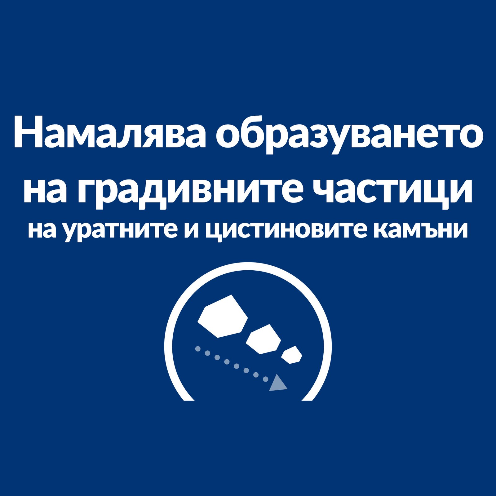 Лечебна мокра храна за кучета с уринарни проблеми, с уратни и цистинови уринарни камъни.