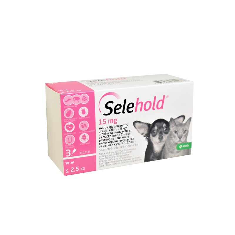 Selehold – Селехолд 15 мг. за кучета и котки < 2.5 кг. кутия 3 пипети