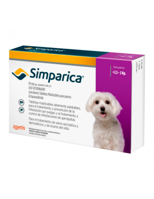 Simparica 10mg – вкусни таблетки за кучета от 2.5 до 5кг – За профилактика срещу външни паразити, 3 броя таблетки