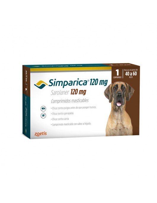 Simparica 120mg – вкусни таблетки за кучета от 40 до 60кг – за профилактика срещу външни паразити, 3 броя таблетки