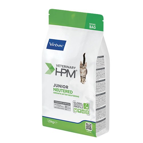 Virbac Veterinary HPM Junior Neutered Cat – пълноценна храна за кастрирани подрастващи котенца от кастрация до 12 месеца.